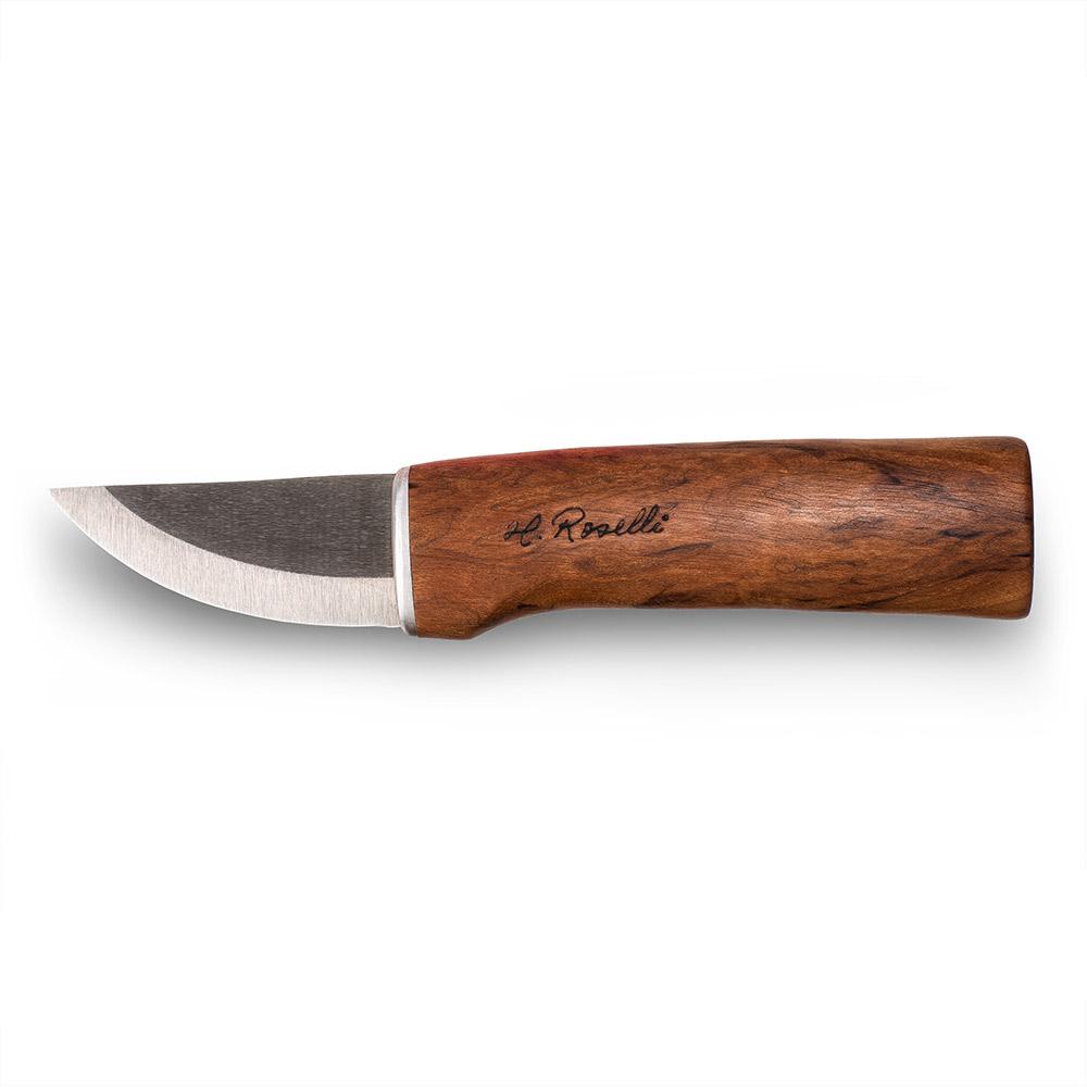 The outdoor knife has a shorter blade designed for handling moose, but the Roselli Wootz UHC Vaarinpuukko also functions well as a general-purpose knife.