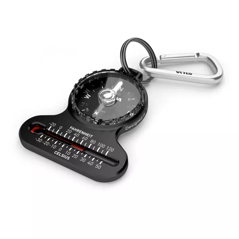 Silva Pocket Compass is a compact combination of a compass and thermometer, ideal for use as a keychain or for hanging on a backpack.