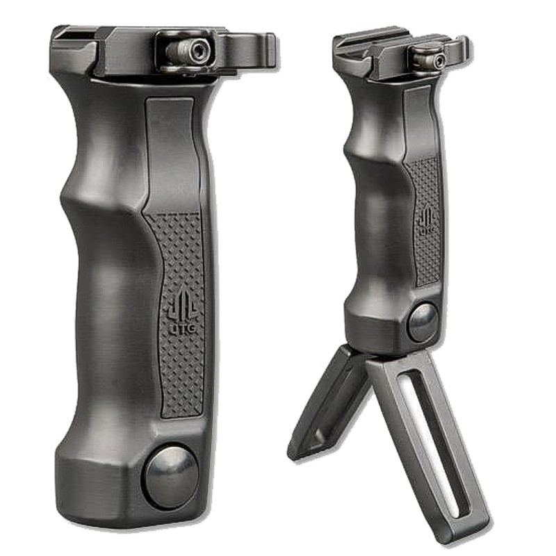 Material: Aircraft aluminum, matte black finishErgonomically designed rubber-coated gripBipod height: 21 cm, leg angle: 65 degreesThe front grip can also be easily attached to hunting rifles using the UTG sling swivel adapter and Riser Mount Picatinny rail
