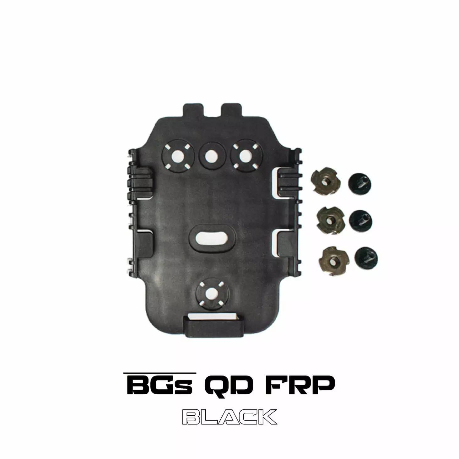 The package includes one FRP attachment dock. A separate attachment dock is needed for each belt where you want to expand the quick-release system. Docks also secure your holster nicely in a range bag, gun cabinet, or gun case. The FRP dock attaches directly to BGS or Safariland belt attachments and MOLLE adapters. The dock can also be secured with screws to any other flat surface. The locking plate attaches to the dock using spring-loaded tabs, pushing directly to engage and opens by pressing the tab inwards. The package comes with all necessary screws and nuts for secure installation. The dock series brings the holster away from the body, making it easier to grasp the handle.