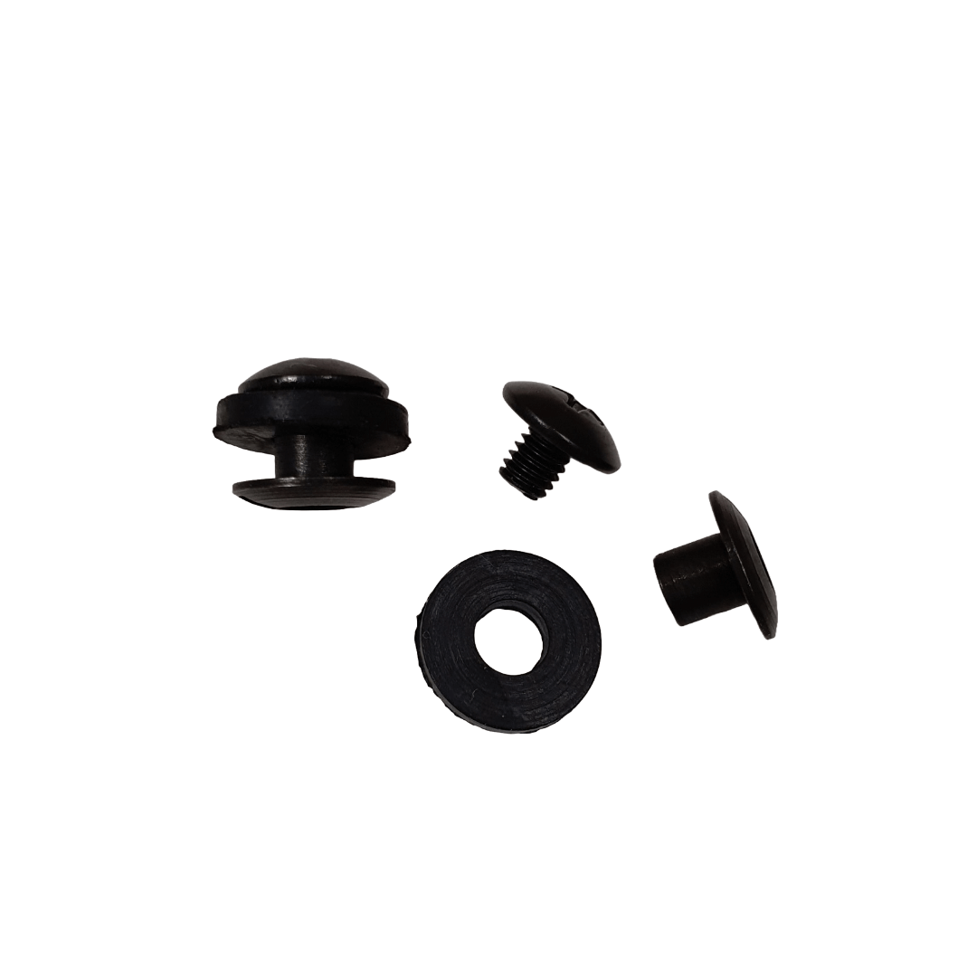 Spare/replacement screw kit for Battle Gnome Solutions T-Lok belt attachment. Includes two screws, two counterparts, and two rubbers.